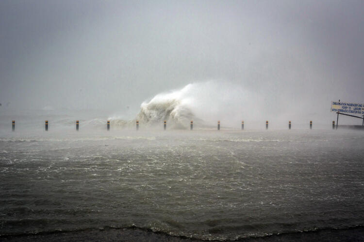 - Fotoğraflarda kasırgayla birlikte yükselen denizin taştığı, kaldırımların ve bazı restoranların su altında kaldığı göze çarpıyor.