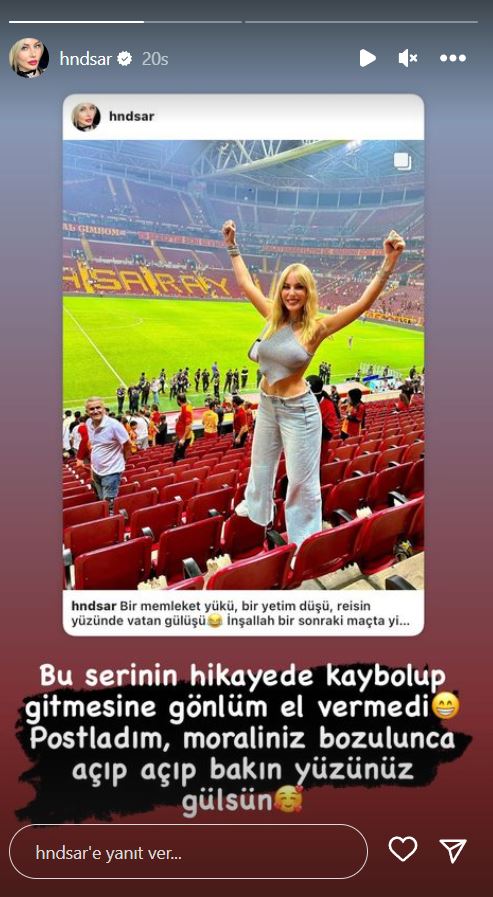 - Koyu bir Galatasaray taraftarı olan Sarıoğlu tribünden pozlarını paylaştı.