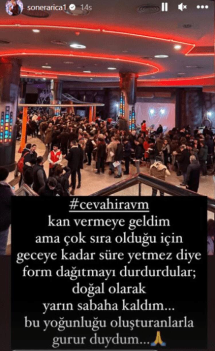 - 57 yaşındaki ünlü şarkıcı Soner Arıca, bunun ardından Kızılay’ın kan bağışı aldığı bir AVM’ye gitti. Birçok vatandaşın Kınık’tan gelen çağrıya kayıtısız kalmayarak uzun kuyruklar oluşturduğu anın fotoğrafını paylaşan Arıca, şu ifadeleri kullandı: