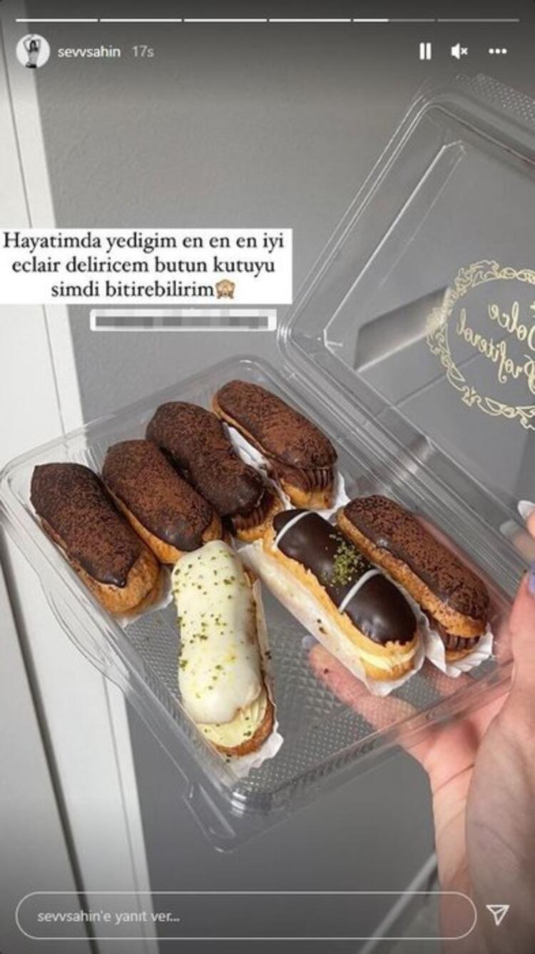 - Şevval Şahin yaptığı bu paylaşıma, “Hayatımda yediğim en en en iyi eclair delireceğim bütün kutuyu şimdi bitirebilirim” notunu düştü.