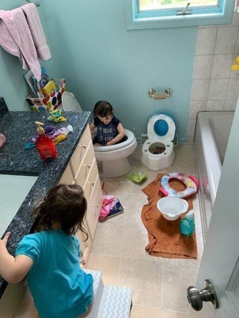 - Çocuklarını kısa bir süre yalnız bırakan anne-babalar, gördükleri karşısında şaşkınlıklarını gizleyemeyip o anları kayda aldı. İşte ortamı savaş alanına çeviren haylaz minikler…