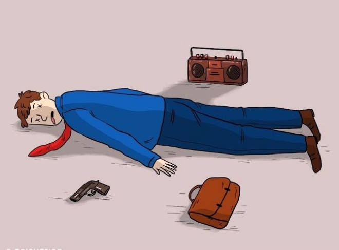 Bir adam yanında silah, çanta ve teyiple ölü bulunuyor. Polis teypteki son kaydı dinlemek için “Play” tuşuna bastığında, “Bu hayattan çok yoruldum artık acımı sonlandırmak istiyorum” diyen bir ses ve hemen peşinden silah sesi duyuyor. Ancak polisler bunun intihar değil bir cinayet olduğunu düşünüyor. Ses kaydına rağmen polisler bunun bir cinayet olduğunu neden düşündü?