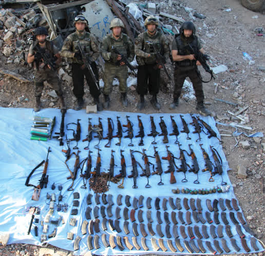 Mardin’in Nusaybin ilçesinde teslim olan teröristlerin ifadeleri doğrultusunda terör örgütü PKK’nın cephaneliğine ulaşıldı. Cephanelikte ele geçirilen 27 kalaşnikof ve çok sayıda mühimmatın bakımlarının yapıldığı ve tekrar kullanılmak üzere streç filmlerl