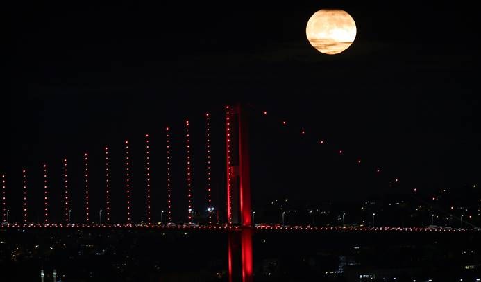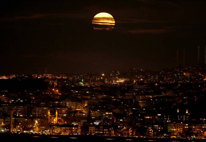 Dünya’ya en yakın konuma gelen Ay seyrine doyulmaz bir manzara oluşturdu. İstanbul’da “Süper Ay” çıplak gözle de görülebildi. İstanbullılar, bu doğa olayını görüntülemek için fotoğraf makineleri ve cep telefonlarına sarıldı.