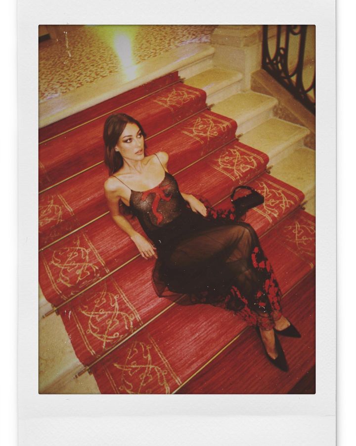 - Süper mini elbise tercih eden oyuncu, çömelerek poz verdi.