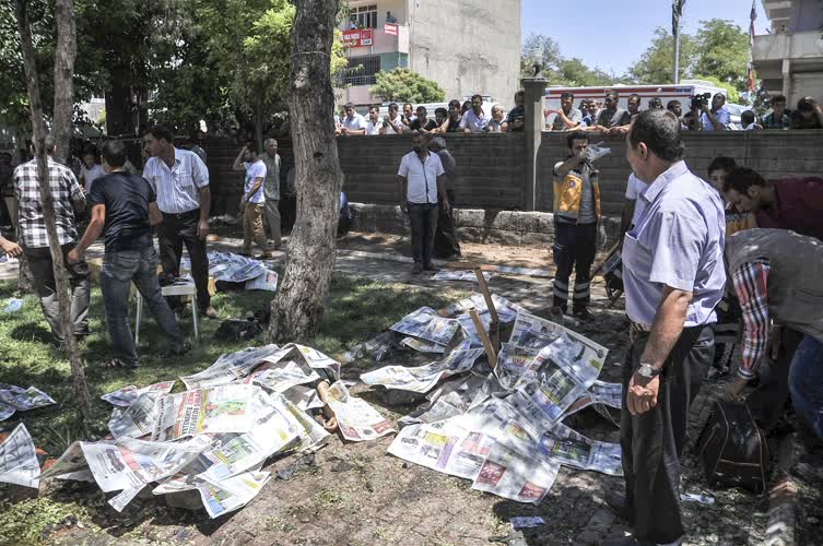 - AK Parti Şanlıurfa İl Başkanı Zeynel Abidin Beyazgül, Suruç İlçesi’nde meydana gelen bombalı saldırıyı düzenlenen basın açıklamasında kınadıklarını söyledi. Büyükşehir Belediye Başkanı Celaletttin Güvenç, Haliliye Belediye Başkanı Fevzi Demirkol ve diğer ilçe belediye başkanları ile teşkilat üyelerinin katıldığı açıklamada Beyazgül, Urfa’nın huzurunu bozmak isteyenlere Urfa halkının fırsat vermeyeceğini söyledi.