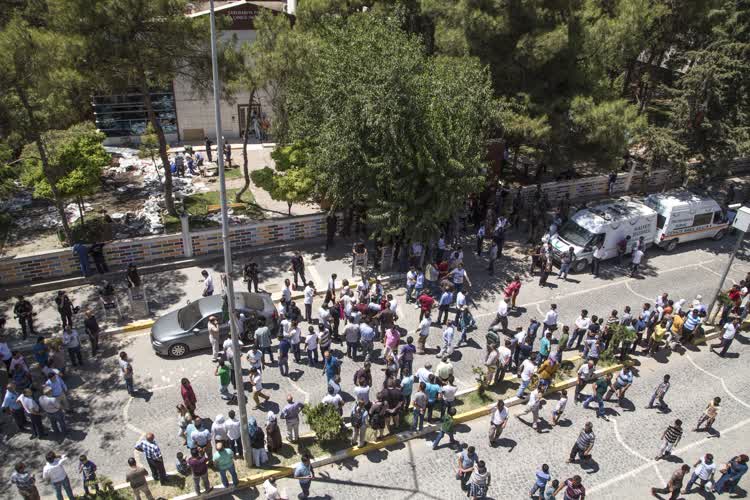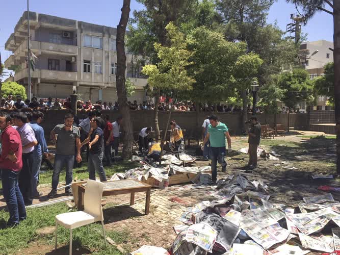 - Şanlıurfa’nın Suruç ilçesinde 11 Nisan Caddesi’ndeki belediyeye ait kültür merkezinin bahçesine bulunan gruba saldırı düzenlendi.