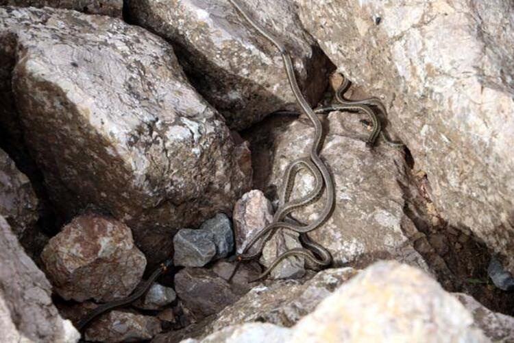 - Yüksekova ilçe merkezine 30 kilometre uzaklıkta bulunan Yürekli Köyü’ndeki ‘Yılan Pınarı’ bölgesinde, havaların ısınmasıyla birlikte yuvalarından çıkan yılanlar sürü halinde görüntülendi.