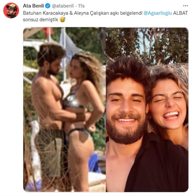 - SARMAŞ DOLAŞ GÖRÜNTÜLENDİLER… Fenomen Ata Benli, özel hayatını gözlerden uzak yaşayan Batuhan Karacakaya’nın yeni ilişkisinden aşk dolu bir pozu paylaştı. Benli’nin Twitter hesabından yaptığı paylaşımda Karacakaya ile Çalışkan çıktıkları tatilde sarmaş dolaş bir halde. İkilinin fotoğraflarının ortaya çıkmasının ardından daha önce çektirdikleri fotoğraflar da sosyal medyada hızla yayıldı. Kısa sürede gündem olan Çalışkan ve Karacakaya ise ilişkileri hakkında henüz bir açıklama yapmadı. (Haberler.com)
