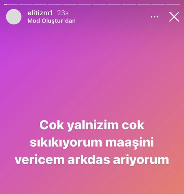 - “ARKADAŞ ARIYORUM, MAAŞINI VERECEĞİM” Yaptıkları ve söyledikleriyle sık sık dikkatleri üzerine çeken Bahar Candan, sosyal medya platformu Instagram’ın hikaye kısmından takipçilerine seslendi. Yalnızlığından dem vuran fenomen isim, “Çok yalnızım ve sıkılıyorum. Bir arkadaş arıyorum, maaşını vereceğim” şeklinde bir paylaşımda bulundu. (haberler.com)