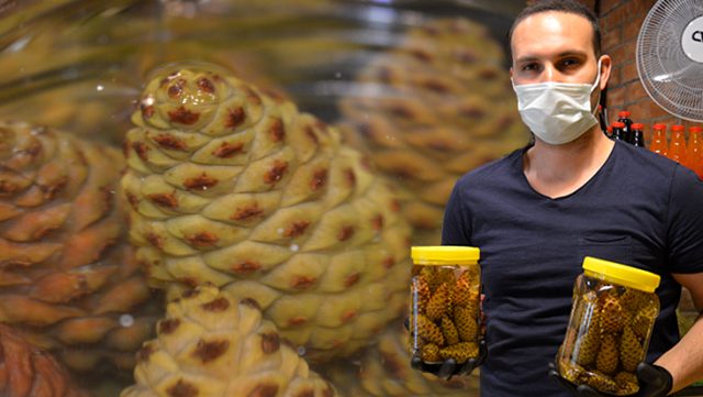 - “DENEMELİK YAPMIŞTIK, ŞU AN HER İSTEYENE VEREMİYORUZ” Ünal Atalay, 2 yıl önce denemek üzere başlattığı çam kozalağı turşusu hakkında konuştu. Atalay, “Bursa Gemlik ilçesine yakın Gedelek köyümüz var. Bu köyün dağlarına çıkarken, bu çam kozalağı ilgimizi çekti. Daha sonra bunun faydaları hakkında araştırma yaptık ve çok faydalı olduğunu öğrendik. Bunu nasıl turşu yapabiliriz diye aramızda konuştuktan sonra denemelik olarak bir kavanoz turşu yaptık. Yaptığımız kozalak turşusunun tadı da çok hoş oldu. Birkaç kavanoz daha yaptık ve dükkanımıza süs olarak koyduk. Ama kimse pek bilmediği için sormazdı bile. Pandemi geldiği zaman zaten turşu satışlarımız yükseldi. Bu arada birileri bu kozalak turşusunun faydaları hakkında haber yapmış ve vatandaşlar da onu görünce artık kuyruk oluşturmaya başladı. Son 2 yılda satamadığım üründen daha fazlasını 3 ayda sattık. Artık her isteyene veremiyoruz. Biz sadece 4-5 kavanoz getirebiliyoruz. Müşterileriz, ‘ben numaramı vereyim, parasını vereyim’ diyor. Ancak biz bunu yapmıyoruz. Zaten çok getiremiyoruz. Gelen müşterimize elimizde olanlardan veriyoruz” şeklinde konuştu.
