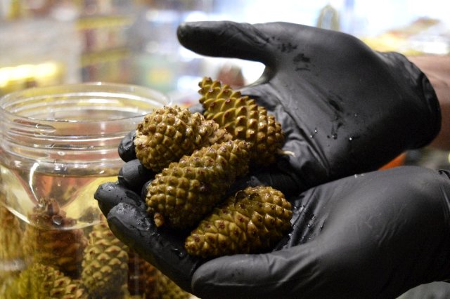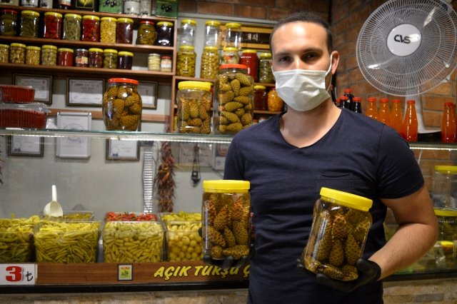 - Eskişehir’de yaklaşık 2 yıl önce ormandan toplamaya başladığı çam kozalağından turşu yaptıktan sonra bunları dükkanında sadece süs olarak bulunduran satıcı Ünal Atalay, pandemi sürecinde faydasını öğrenenlerin talepleri artınca işleri hayli açıldı. Atalay, deneme amaçlı başladığı kozalak turşusunda şimdi siparişlere yetişemiyor.