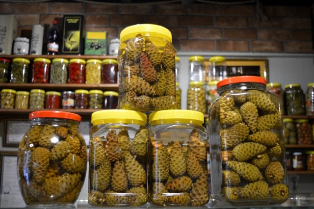 - Uzun emekler sonucunda dağlık ve ormanlık alanlardan toplanan çam kozalağını işledikten sonra yapılan turşu, Eskişehir’de çok ilgi görüyor. Kentte bulunan her turşucuda satılmayan, son birkaç yıldır süs olarak bazı turşucularda bulunmasına rağmen ilgi görmeyen kozalak turşusu, pandemi sürecinde bir hayli değere bindi. Eskişehir’de uzun yıllardır turşu satıcısı olarak bulunan Ünal Atalay, ilk olarak 2 yıl önce topladıkları kozalaktan denemelik turşu yapmıştı. Yapılan işlemeler sonucunda elde edilen turşuyu sadece süs olarak dükkanında bulunduran Atalay, dünyayı etkisi alında alınan koronavirüs döneminde ürünün oldukça talep edildiğini belirtiyor. Yılın belli bir döneminde toplanan ve çok fazla ürün de elde edemediklerini belirten Atalay, son 3 ayda gelen taleplere bir türlü yetişemediğini aktarıyor.
