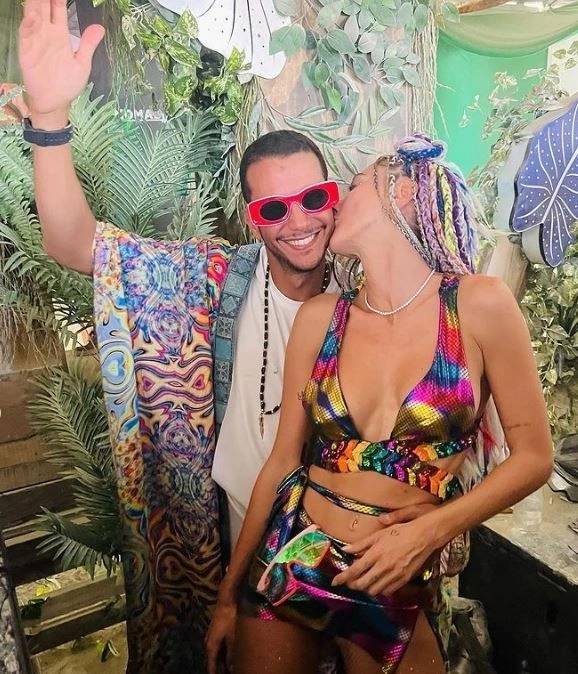 - İkili festivale uygun giyimiyle de dikkat çekti.