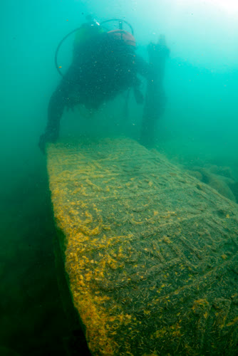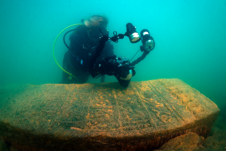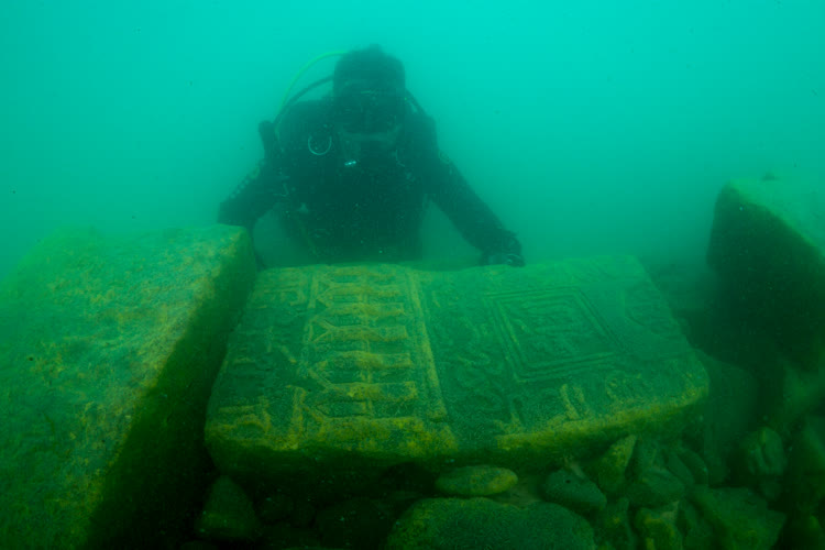 Van Gölü’ndeki araştırmaları sırasında binlerce yıllık mercanların yerini tespit eden su altı görüntüleme yönetmeni Tahsin Ceylan’ın son keşfi Selçuklu dönemine ait mezar taşlarından yapılmış iskele oldu.