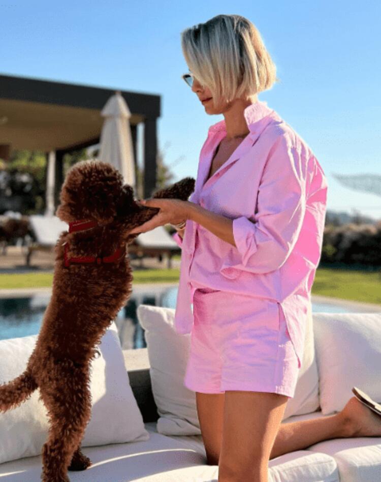 - Hem güzelliği hem fit haliyle hayran bırakan ünlü sunucu pembe şort gömlek takımıyla hayranlarından tam not aldı.