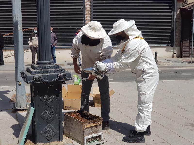 - Çakmak’ın arıların üzerine su sıkıp, süpürge ile bulundukları yerden almaya çalıştığı sırada itfaiye ekibi bölgeye geldi. Arı kıyafeti giyerek duruma müdahale eden itfaiyeciler, kraliçe arıyı yanlarında getirdikleri kovanın içine alarak diğer arıların da gelmesini sağladı. Arının tamamı direkten ayrıldıktan sonra, Ekrem Çakmak arıları sahiplendi.