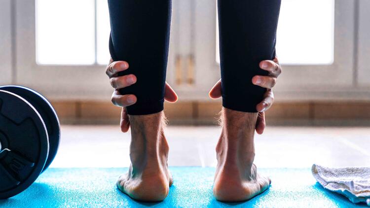 - Topuğunuzu havluya bastırın ve kumaşı sıkıştırarak ayak parmaklarınızı içe doğru kıvırın.