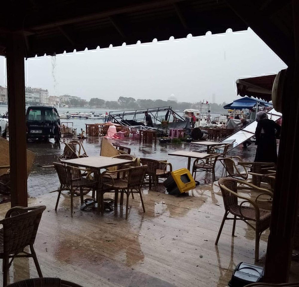 - Çevrede insan olmadığını belirten Altıntaş, “Biz dükkanın önünde oturuyorduk. Komşularımızın tüm masa sandalyeleri hortum nedeniyle savruldu. Hortum lodosla birlikte geldi, sahili boydan boya etkiledi.” dedi.