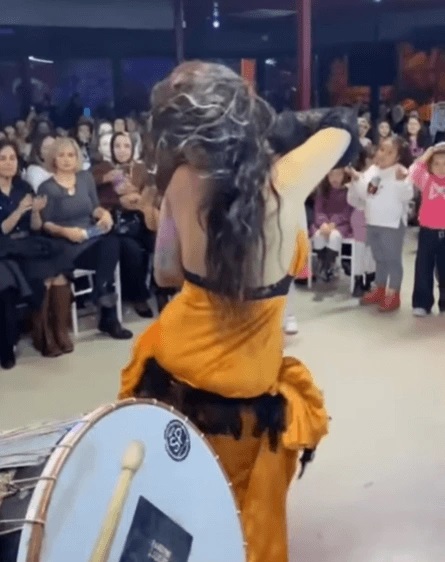 - Kadın ve çocuklardan oluşan seyircilerin karşısında yaptığı dans tepki topladı.
