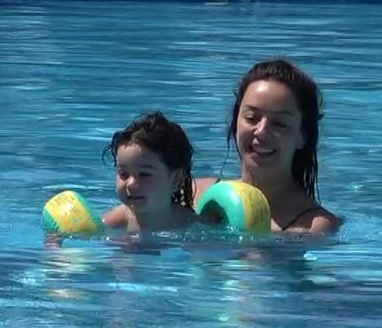 - Oğlu Demir ile havuzda yüzen ve oyunlar oynayan oyuncunun neşeli halleri dikkatlerden kaçmadı. Tescilli güzelin eşi Atakan Koru ise plaja inmeyerek, otel odasından çıkmayı tercih etmedi.