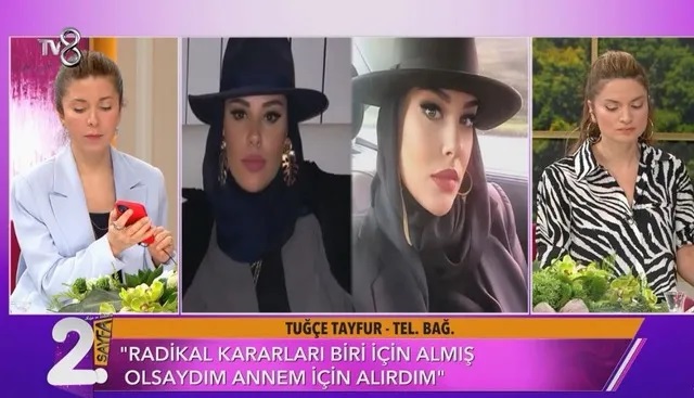 - Bir süre önce tarzını değiştiren Tuğçe Tayfur açıklamasında, “Örtünmeyi istedim ama beceremedim” açıklamasında bulundu.(mynet.com)