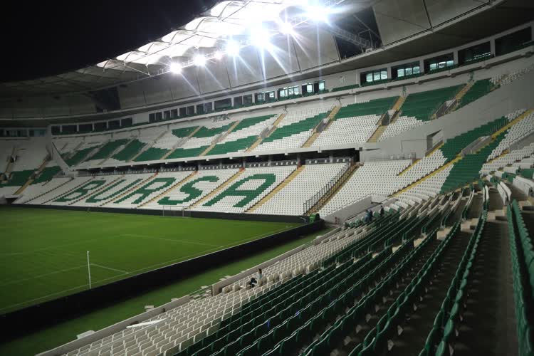 Bursaspor’un yeni stadındaki ilk maçı, Bursa Büyükşehir Belediyesi personeliyle, yeşil-beyazlı kulübün yöneticileri ve futbol takımı teknik heyeti yaptı. Çekişmeye sahne olan maçta, yeni stattaki ilk golü Bursaspor Teknik Direktörü Ertuğrul Sağlam atarken