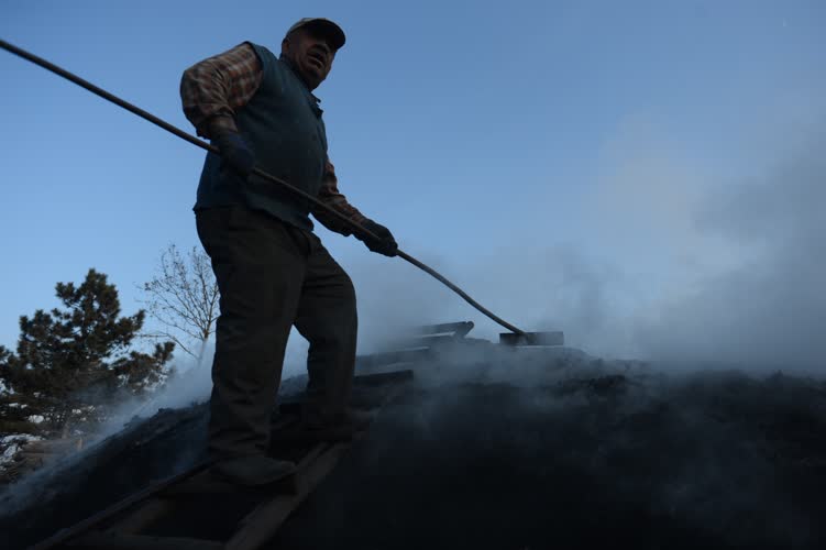 Bursa’nın Osmangazi ilçesinin kırsal mahallelerinden Dağakça’da, odunları mangal kömürüne dönüştürmek için toz duman arasında ter döken köylüler, yaktıkları torakların başında gece gündüz nöbet tutuyor.