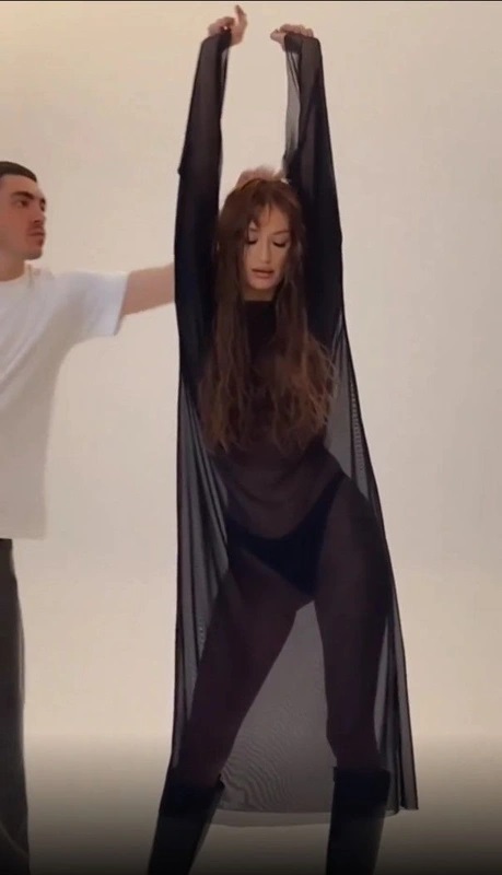 - Soydan yine benzer bir transparan siyah bir elbise giydi.