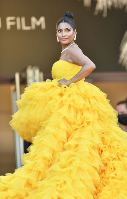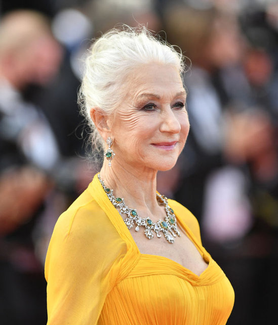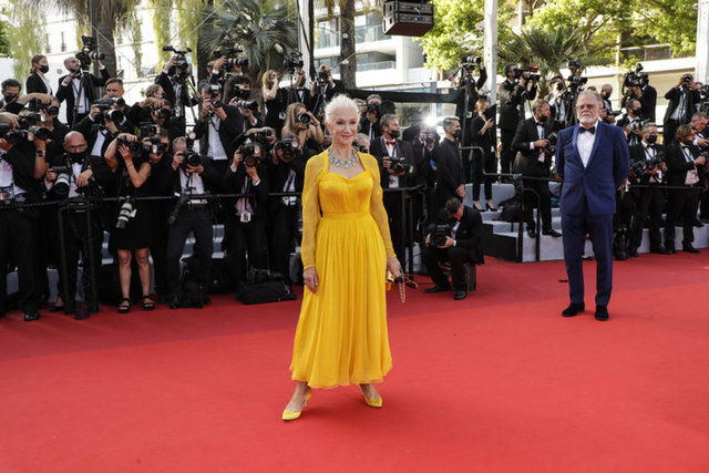 - İngiliz oyuncu Helen Mirren sarı elbisesiyle sade ve şık görünüyordu.