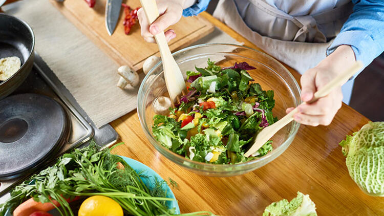- Üzerini hazırladığınız salata sosunu dökün ve güzelce karıştırın.