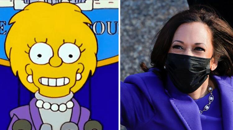 - YEMİN TÖRENİNDE ŞOK BENZERLİK… ABD Başkanı Joe Biden ve Başkan Yardımcısı Kamala Harris’in yemin törenini izleyen Twitter kullanıcıları, tören sırasında Harris’in giydiği kıyafet ile Lisa Simpson tarafından The Simpson’ın ‘Bart to the Future’ bölümünde giyilen kıyafet arasındaki inanılmaz benzerliği fark ettiler.