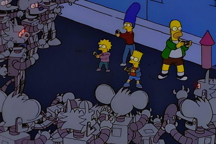 - DÜNYAYI ELE GEÇİREN ROBOTLAR… Simpson ailesi, her araçta robotların bulunduğu bir eğlence parkını ziyaret etti. En sonunda robotlar kontrolü kaybetti ve çevrelerindeki çoğu insanı öldürdü. Halk arasında “Yapay Zekanın babası” olarak bilinen Jürgen Schmidhuber, robotların birkaç on yıl içinde dünyayı kolaylıkla ele geçirebileceğini tahmin ediyor.