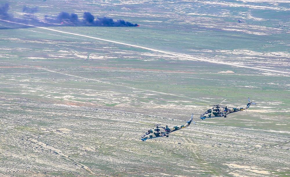 Türk ve Azerbaycan Silahlı Kuvvetlerinin Azerbaycan’da başlattığı, “Mustafa Kemal Atatürk 2019” ismi verilen ortak askeri tatbikat kapsamında temsili düşman hedefleri kara ve havadan vuruldu.