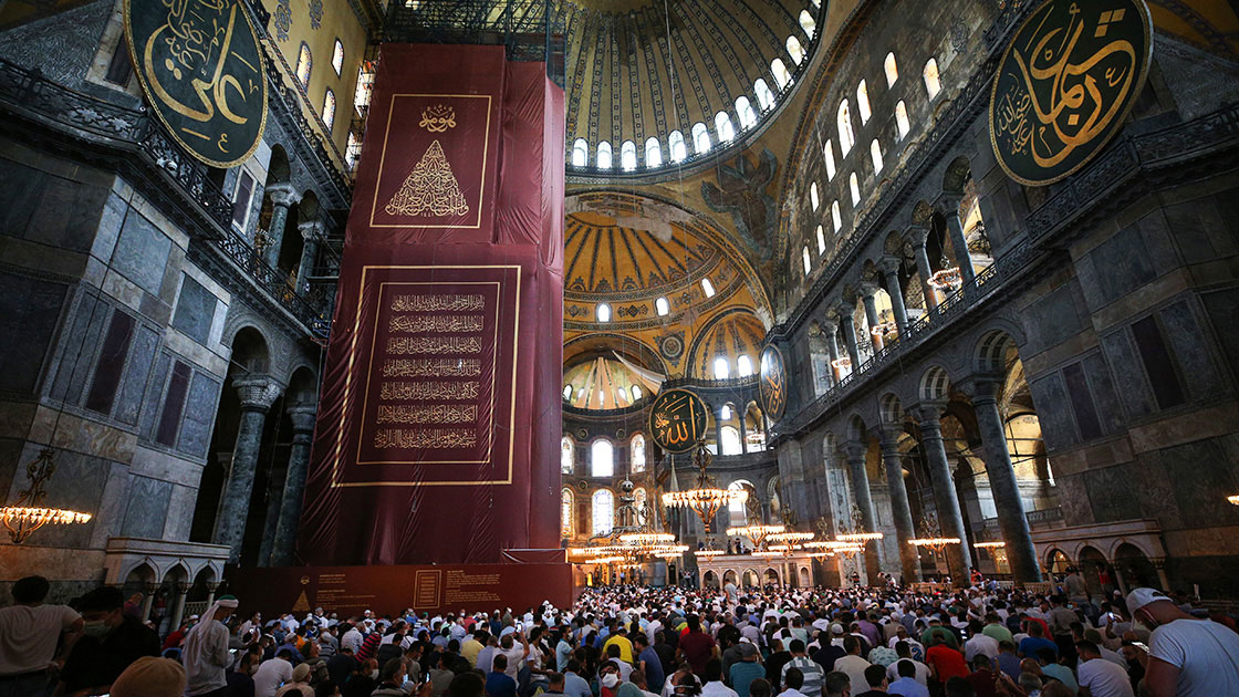 - 86 yıl aradan sonra 24 Temmuz’da kılınan ilk cuma namazıyla Ayasofya-i Kebir Cami-i Şerifi ibadete açıldı. Diyanet İşleri Başkanı Prof. Dr. Ali Erbaş, caminin içi ve çevresini dolduran binlerce vatandaşın katılımıyla kılınan cuma namazında kılıçla minbere çıkarak ilk hutbeyi okudu.