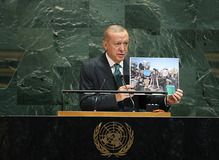 - Eylül: Cumhurbaşkanı Erdoğan, BM Genel Kurulu’na hitabında Gazze’de yaşanan soykırımı bölgeden AA foto muhabirlerinin çektiği fotoğrafları göstererek anlattı. Dünya liderlerine seslenen Erdoğan, “Gün bugündür. Gün, insanlık adına Filistinli mazlumların yanında dimdik durma günüdür. Halklarınız Gazze’deki barbarlığa tepki gösterirken, gelin sizler de adım adım cesaretinizi gösterin. Çocukların çocukları büyüttüğü Gazze’ye karşı insanlık görevinizi yerine getirin.” dedi.