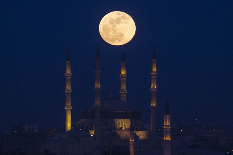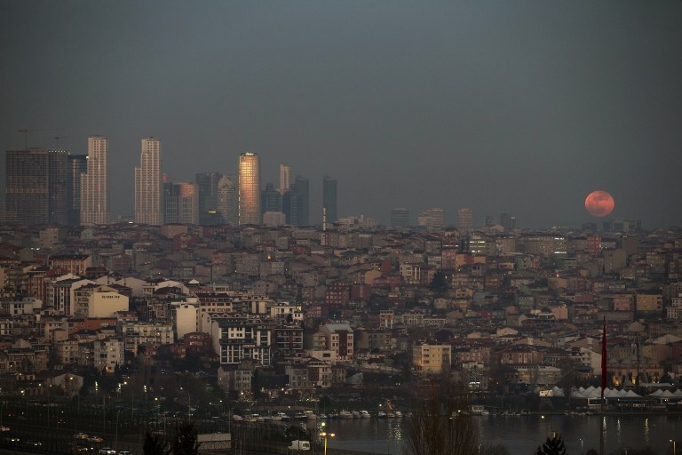 Ay’ın her zamankinden parlak daha büyük ve daha kırmızı görüleceği süper kanlı mavi Ay görüntüsü Türkiye’de de 18.34 sıralarında kısmen izlenebildi.