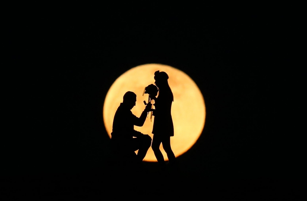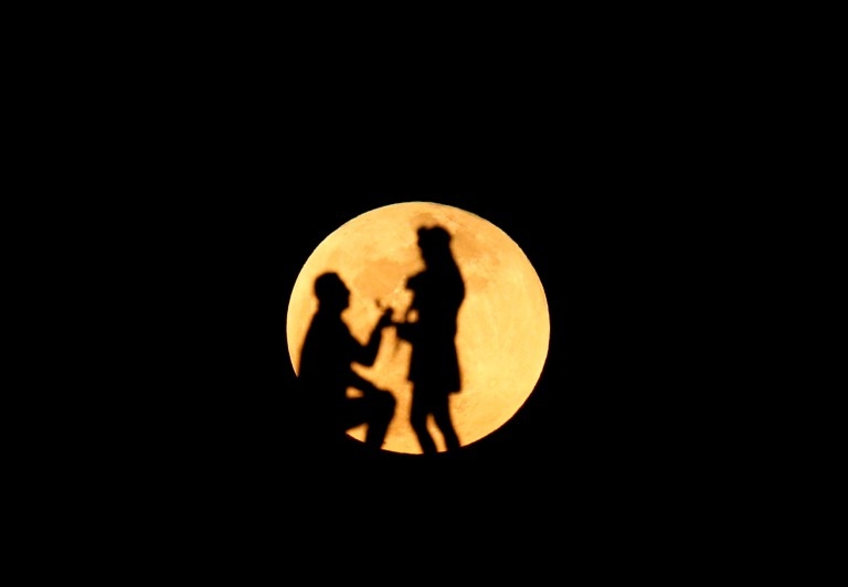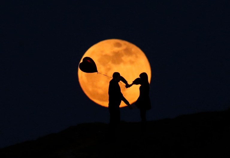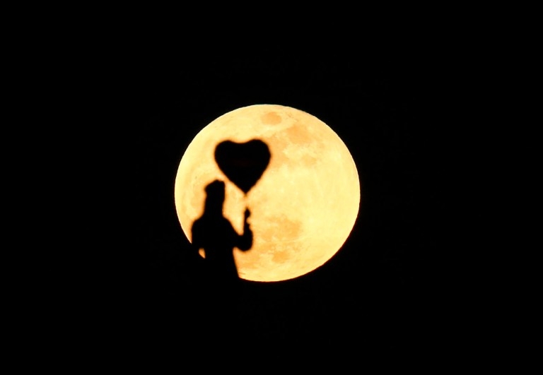Havanın kararmasıyla birlikte Kanlı Ay saat 18.34 sıralarında kendini gösterdi.