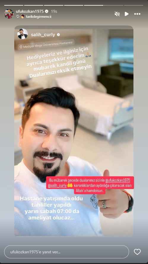- Paylaşımında: Öncelikle tüm İslam âleminin kandilini en kalbi duygularımla kutluyor, bu mübarek gecenin hayırlara vesile olmasını diliyorum. Hastalığımın ilk gününden bu yana yanımda olan; kıymetli meslektaşlarıma, izleyicilerime ve dualarıyla destek olan herkese yürekten teşekkür ederim. Sizlerle birlikte yürüdüğümüz bu sürecin sonuna yaklaştım. İnşallah yarın yaklaşık 11 saat sürecek karaciğer nakli ameliyatıma gireceğim. Hiçbir korkum yok; hazırım, sabırlıyım ve umutluyum. Ve bu süreç bana bir kardeş daha kazandırdı; Salih artık sadece bir yol arkadaşı değil, canımdan bir parça — öz kardeşimdir. Bu yolun en kıymetli destekçilerinden olan kardeşlerim Umut Özkan ve Alper Özkan’a gönülden teşekkür ediyorum. Bu süreçte sesim oldular.