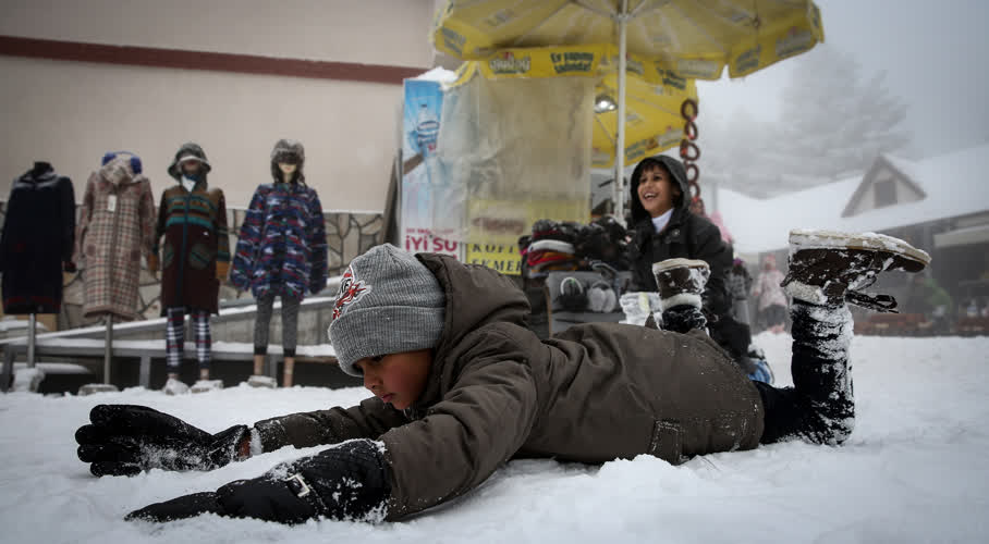 Türkiye’nin önemli kış turizm merkezlerinden Uludağ’da kar yağışı Arap turistleri sevindirdi.