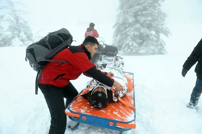 Uludağ’da yoğun sis altında Jandarma Arama Kurtarma (JAK) timleri tarafından yapılan kurtarma tatbikatı nefesleri kesti.