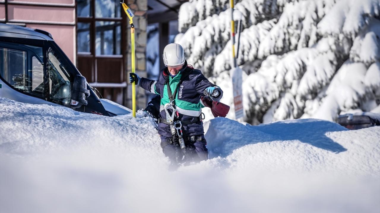 - Uludağ Elektrik Dağıtım AŞ (UEDAŞ) ekipleri, kar kalınlığının 95 santimetre ölçüldüğü Uludağ`da yoğun kar yağışının etkisiyle yaşanabilecek olası arızalara karşı enerji sürekliliğini sağlamak için sepetli araçların yanı sıra arazi araçlarıyla görev yapıyor.