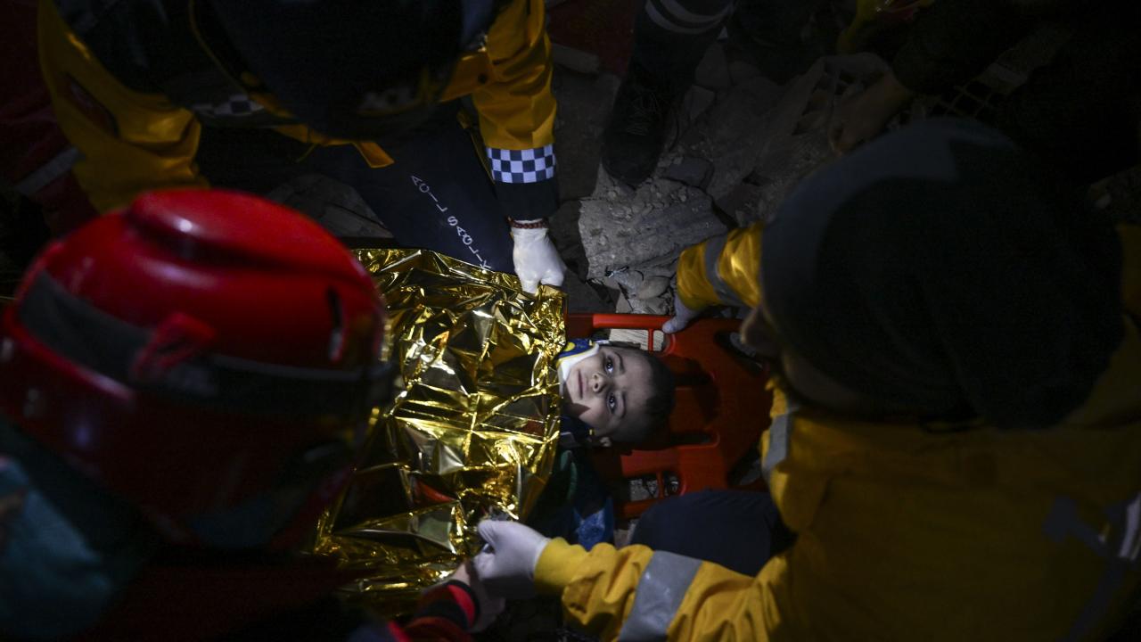 - Hatay`ın merkezinde bulunan Uğur Mumcu Caddesinde yıkılan bir apartmanın enkazından bir çocuk 45 saat sonra sağ olarak çıkarıldı.