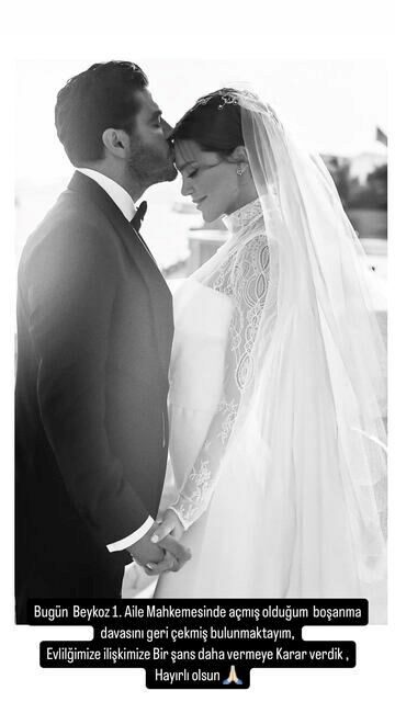- “DAVAYI GERİ ÇEKMİŞ BULUNMAKTAYIM” Akkuş yaptığı açıklamada;”Bugün Beykoz 1. Aile Mahkemesi’nde açmış olduğum boşanma davasını geri çekmiş bulunmaktayım. Evliliğimize, ilişkimize bir şans daha vermeye karar verdik. Hayırlı olsun” ifadelerini kullandı.(NTV)