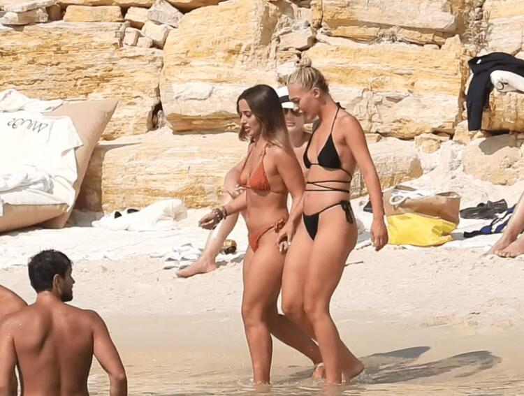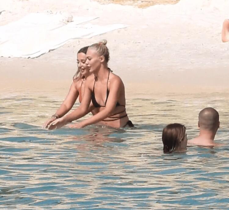 - Uzun süre bar kısmında erkek arkadaşları ile sohbet eden Döngel sonrasında kız arkadaşı ile el ele tutuşarak denize girdi.