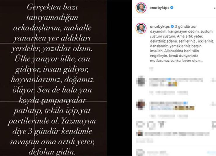 - Destek yerine eğlenceli paylaşımlarına devam edenler ise Onur Büyüktopçu’yu isyan ettirdi. Ünlü oyuncu ve sunucu, sosyal medya hesaplarından bu yönde gönderi yayınlayanlara isyan etti.