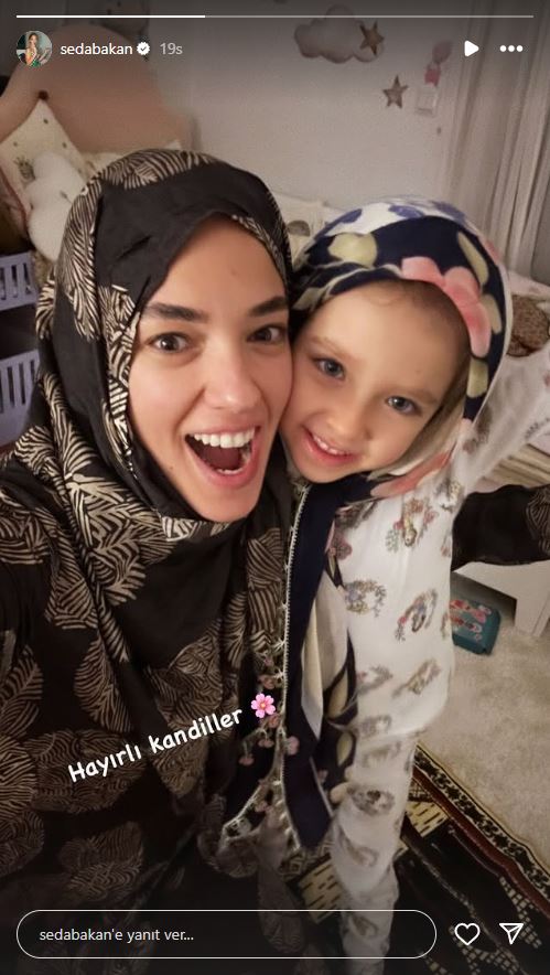 Ünlü oyuncu kızı ile başörtüsü takıp… Sosyal medyadaki aktif paylaşımlarına devam ediyor… 110 Seda Bakan, kandil paylaşımıyla gündem oldu. 210 Kızı ile yaptığı paylaşımda başörtülü ve seccadesi üzerinde poz verdi. ‘Hayırlı kandiller’ yazdı. 310 410 510 610 710 810 910 1010