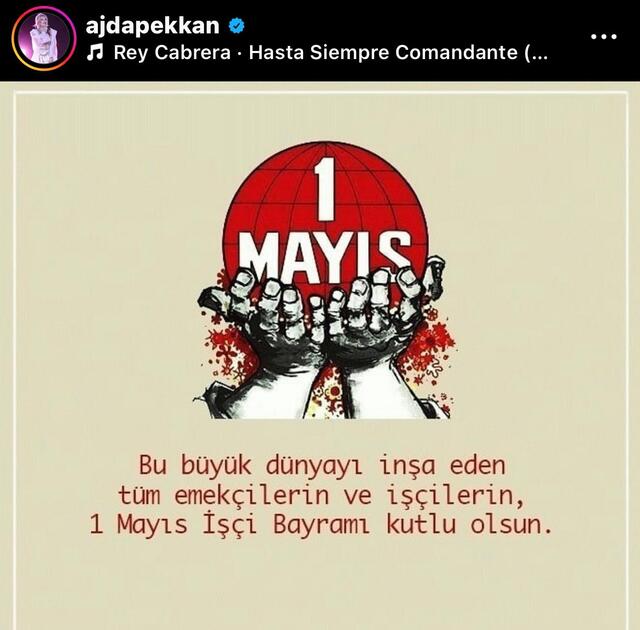 - AJDA PEKKAN: Üreten, hayat veren, alın teriyle ülkemizin büyümesine ve gelişmesine katkı sağlayan tüm emekçilerimizin 1 Mayıs Emek ve Dayanışma Günü’nü tebrik ediyorum. Herkesin adil bir şekilde çalıştığı, hiçbir işçinin hakkının yenilmediği, umut dolu yarınlara kavuşabilmek umuduyla…