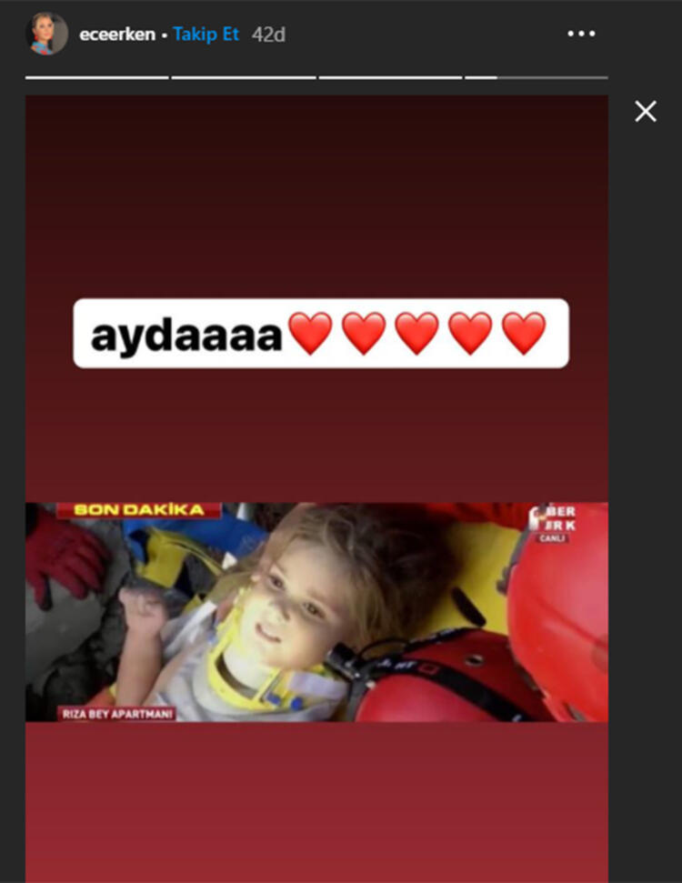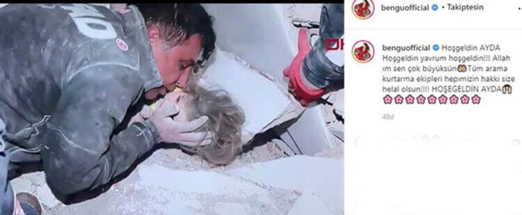 - BENGÜ “Hoş geldin Ayda, hoş geldin yavrum hoş geldin!!! Allah’ım sen çok büyüksün. Tüm arama kurtarma ekipleri hepimizin hakkı size helal olsun!”
