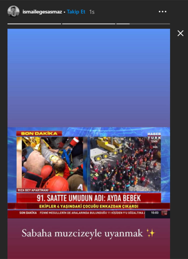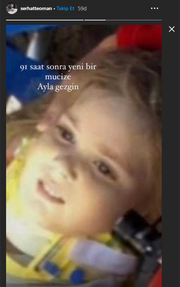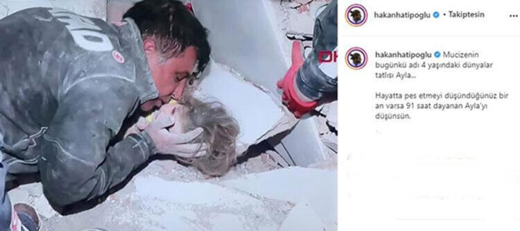 - HAKAN HATİPOĞLU “Mucizenin bugünkü adı 4 yaşındaki dünyalar tatlısı Ayda… Hayatta pes etmeyi düşündüğünüz bir an varsa 91 saat dayanan Ayda’yı düşünsün”